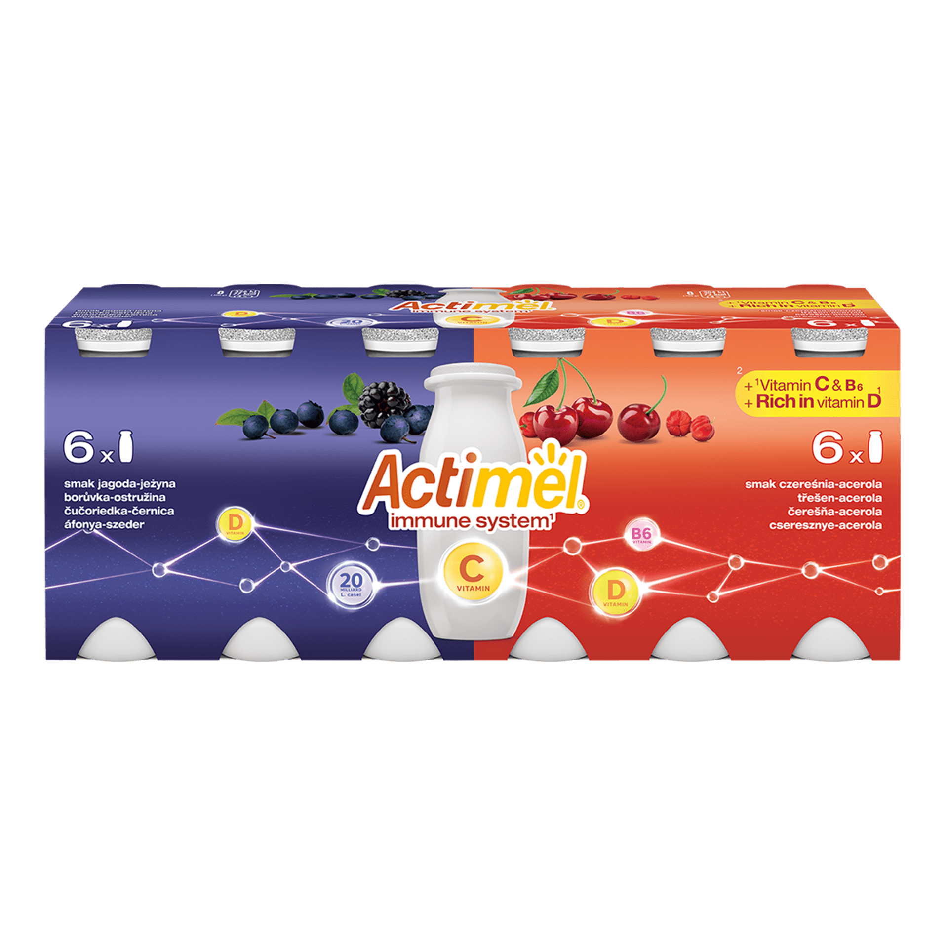 *Minden palack Actimel B6-vitamin forrás, valamint D-vitaminban gazdag. A B6- és D-vitaminok hozzájárulnak az immunrendszer normál működéséhez. Egy palack Actimel a kiegyensúlyozott, változatos étrend és egészséges életmód részeként fogyasztandó.