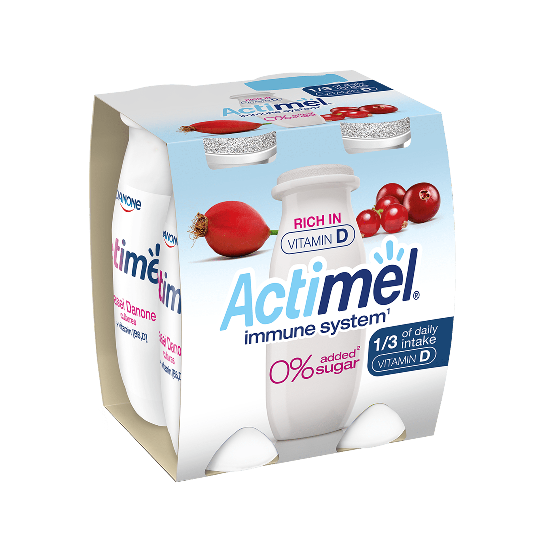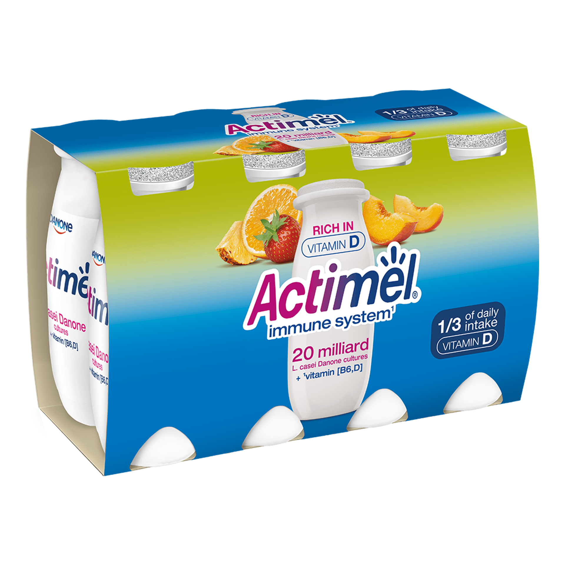 Az Actimel D-vitaminban gazdag, valamint B6-vitamin forrás, ezek a vitaminok pedig támogatják az immunrendszer normál működését. Ráadásul minden palack Actimel a hagyományos élőkultúrák mellett 20 milliárd L. Casei Danone élőkultúrát is tartalmaz.